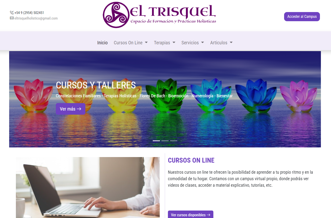 Creazione sito web prodotti olistici in spagnolo per mercato argentino con sezione corsi online benessere. Piattaforma integrata per vendita prodotti e formazione olistica con sistema di pagamento e gestione contenuti autonoma.