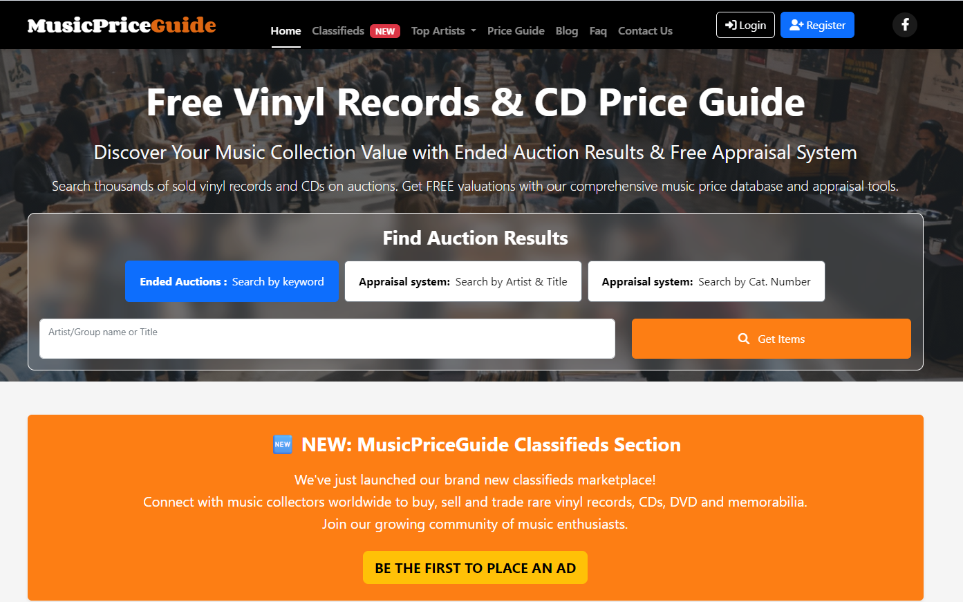 Piattaforma collezionismo musicale con database 3+ milioni di dati per valutazione vinili e CD online. Include sistema classifieds, monitoraggio aste eBay e strumenti professionali per collezionisti mercato USA.