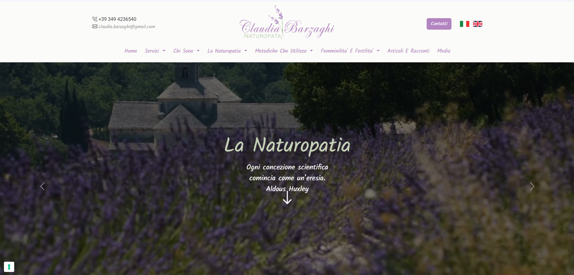 Realizzazione sito web naturopata professionale per Claudia Barzaghi con gestione contenuti, news, FAQ e richieste clienti. Design personalizzato e pannello amministrativo naturopatia per gestione autonoma completa.
